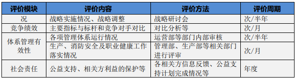 通過年度形勢分析會、年度戰(zhàn)略研討會、月度例會、績效考核等方式,定期對關(guān)鍵績效指標(biāo)、戰(zhàn)略經(jīng)營情況、生產(chǎn)經(jīng)營指標(biāo)、日常運營情況進行審核、評價,以不斷改進組織績效,采取必要的行動。